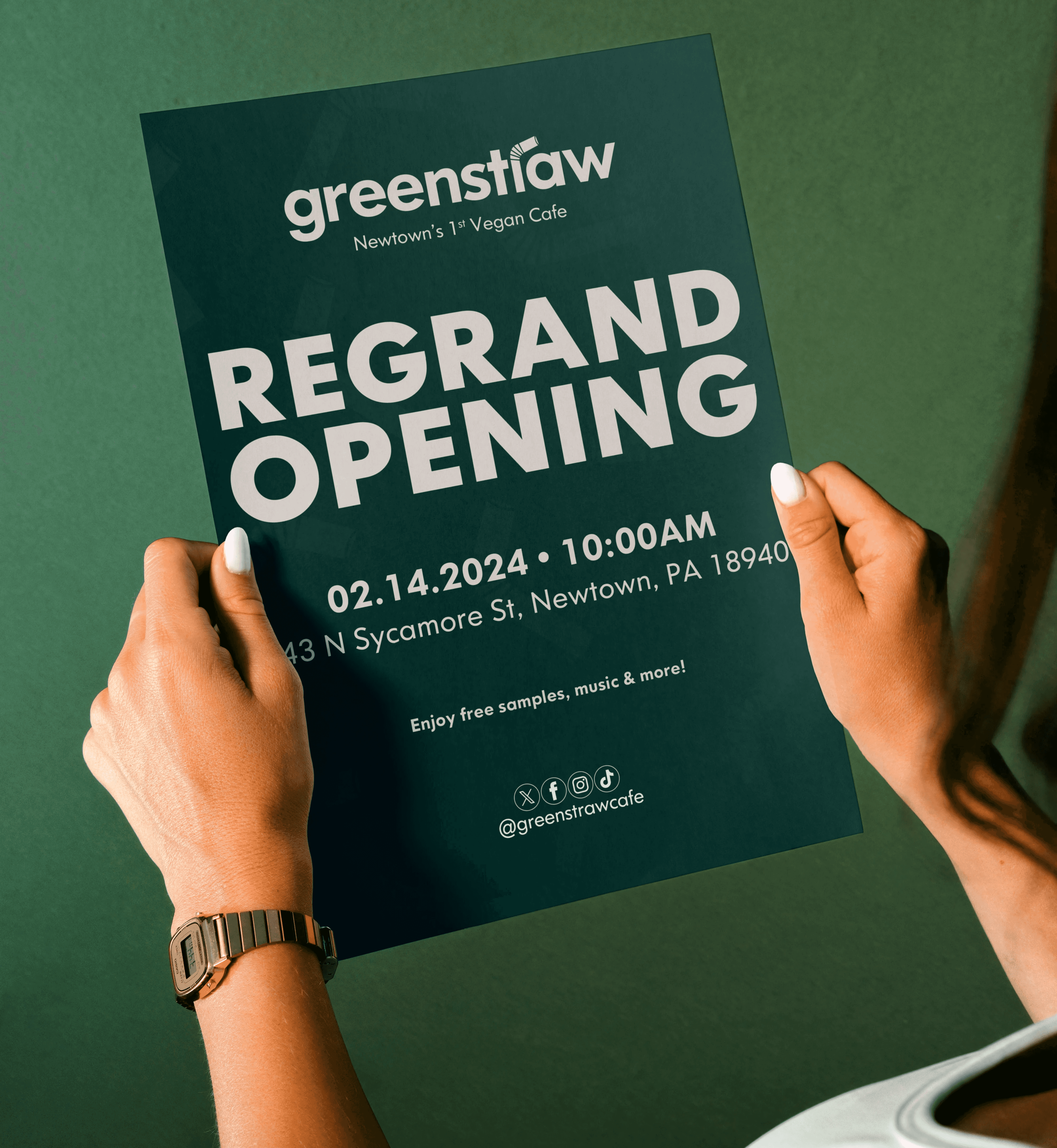 Led brand identity and art direction for Greenstraw Cafe, a 100% plant-based coffee shop. Created a cohesive visual system spanning packaging, cups, and merchandise, establishing a clean, modern presence rooted in the cafe’s plant-based philosophy. The result is a distinct, approachable brand that carries consistency and personality across every touchpoint.